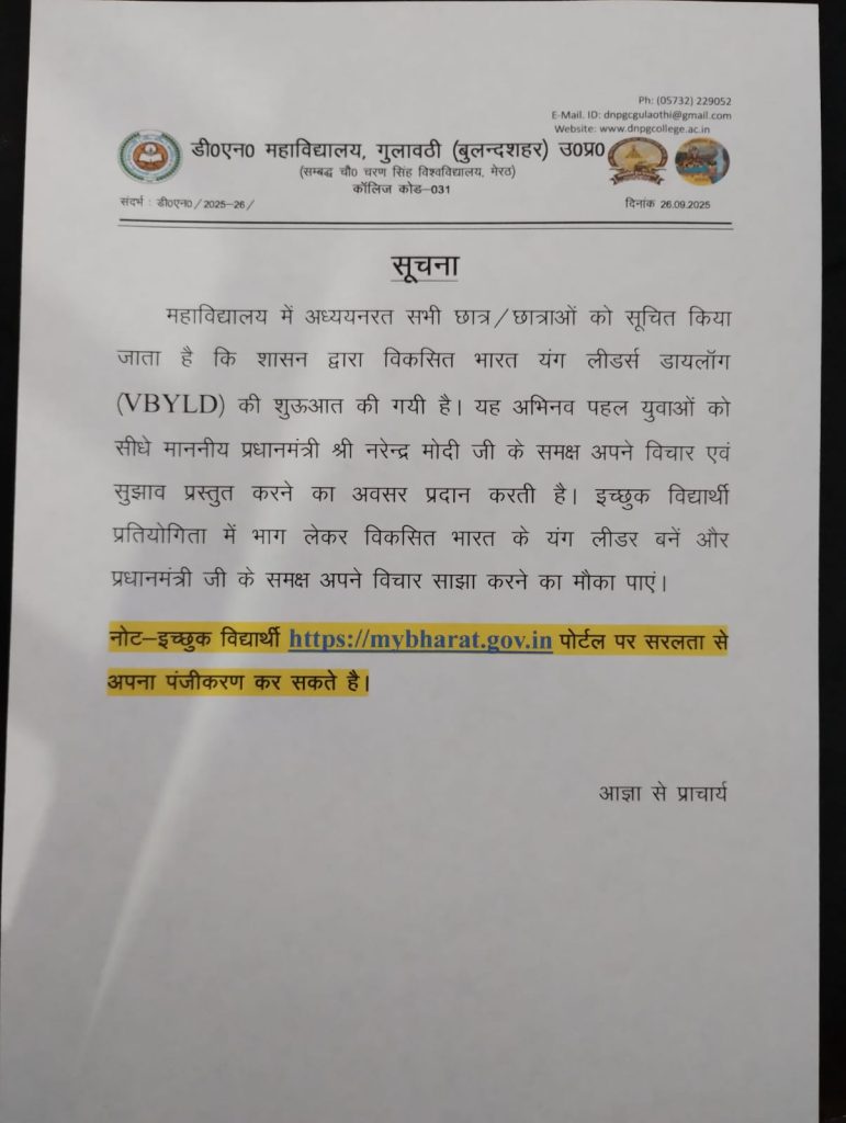 Devanagari Post Graduate College > Notices > यंग लीडर्स डायलॉग (VBYLD)