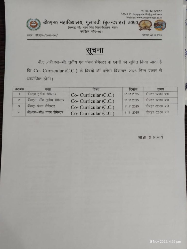 बी0ए0 एवं बी0एस-सी0 तृतीय एवं पंचम सेमेस्टर के Co-Curricular (C.C.) Subject सम्बंधी November 8, 2025November 8, 2025 admin