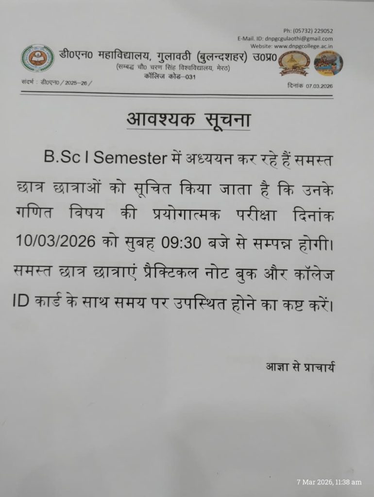 Regarding, Chemistry Practical Dated: 11.03.2026